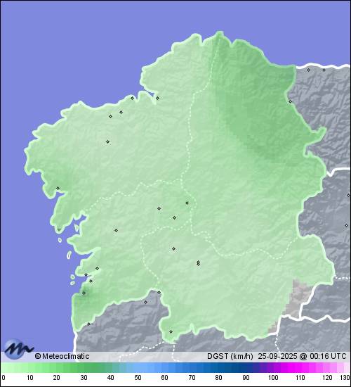24-09-2025 | | Máx. | Mín. | | Temperatura | 23,4 | 9,9 | °C | Humedad | 82 | 35 | % | Viento | 39 | n/a | km/h | Presión | 1.023 | 1.019 | hPa | Precipitación | 0,0 | mm |