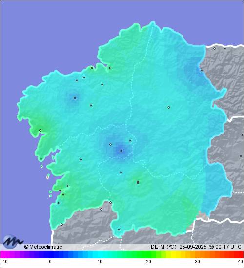 24-09-2025 | | Máx. | Mín. | | Temperatura | 22,3 | 8,6 | °C | Humedad | 89 | 49 | % | Presión | 1.025 | 1.020 | hPa | Precipitación | 0,0 | mm |