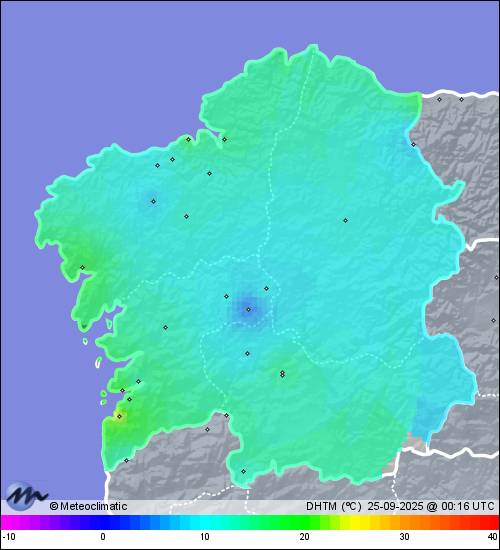 24-09-2025 | | Máx. | Mín. | | Temperatura | 25,0 | 9,5 | °C | Humedad | 90 | 41 | % | Viento | 16 | n/a | km/h | Presión | 1.021 | 1.019 | hPa | Precipitación | 0,0 | mm |