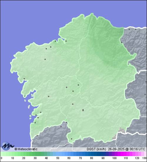 25-09-2025 | | Máx. | Mín. | | Temperatura | 24,1 | 7,9 | °C | Humedad | 99 | 49 | % | Viento | 19 | n/a | km/h | Presión | 1.022 | 1.018 | hPa | Precipitación | 0,0 | mm |