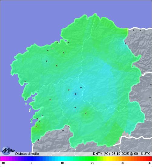 02-10-2025 | | Máx. | Mín. | | Temperatura | 27,8 | 9,9 | °C | Humedad | 92 | 40 | % | Viento | 24 | n/a | km/h | Presión | 1.023 | 1.020 | hPa | Precipitación | 0,0 | mm |