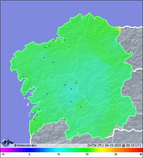 03-10-2025 | | Máx. | Mín. | | Temperatura | 19,6 | 14,1 | °C | Humedad | 96 | 82 | % | Viento | 16 | n/a | km/h | Presión | 1.026 | 1.024 | hPa | Precipitación | 0,0 | mm |