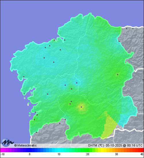 04-10-2025 | | Máx. | Mín. | | Temperatura | 16,6 | 9,3 | °C | Humedad | 98 | 95 | % | Viento | 21 | n/a | km/h | Presión | 1.025 | 1.021 | hPa | Precipitación | 3,2 | mm |