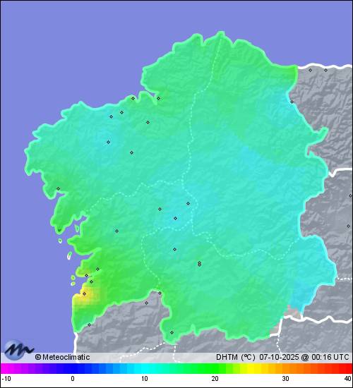 06-10-2025 | | Máx. | Mín. | | Temperatura | 26,0 | 8,4 | °C | Humedad | 99 | 49 | % | Viento | 17 | n/a | km/h | Presión | 1.025 | 1.020 | hPa | Precipitación | 0,0 | mm |