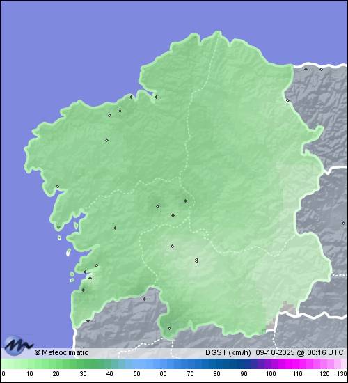 08-10-2025 | | Máx. | Mín. | | Temperatura | 23,1 | 15,7 | °C | Humedad | 97 | 69 | % | Viento | 32 | n/a | km/h | Presión | 1.023 | 1.020 | hPa | Precipitación | 0,0 | mm |