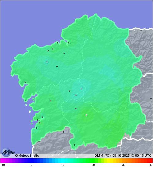 08-10-2025 | | Máx. | Mín. | | Temperatura | 23,5 | 9,9 | °C | Humedad | 99 | 58 | % | Viento | 19 | n/a | km/h | Presión | 1.023 | 1.020 | hPa | Precipitación | 0,0 | mm |