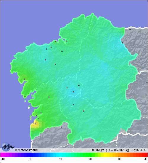 11-10-2025 | | Máx. | Mín. | | Temperatura | 25,2 | 13,0 | °C | Humedad | 90 | 63 | % | Viento | 15 | n/a | km/h | Presión | 1.024 | 1.021 | hPa | Precipitación | 0,0 | mm |