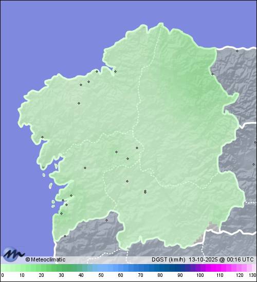 12-10-2025 | | Máx. | Mín. | | Temperatura | 24,1 | 9,8 | °C | Humedad | 92 | 45 | % | Viento | 39 | n/a | km/h | Presión | 1.021 | 1.016 | hPa | Precipitación | 0,0 | mm |