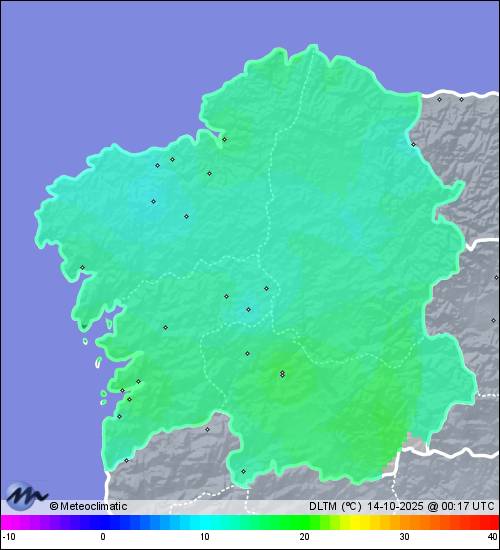 13-10-2025 | | Máx. | Mín. | | Temperatura | 25,3 | 10,0 | °C | Humedad | 99 | 46 | % | Viento | 14 | n/a | km/h | Presión | 1.019 | 1.016 | hPa | Precipitación | 0,0 | mm |