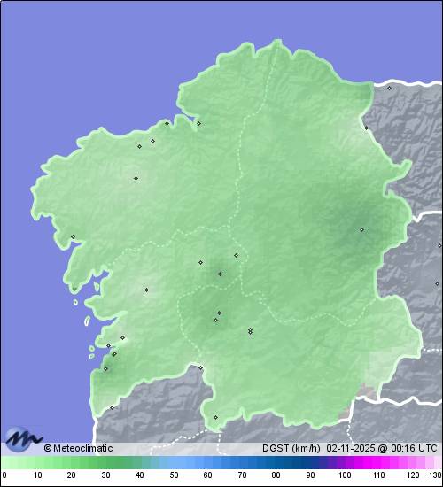 | 01-11-2025 | | | Máx. | Mín. | | | Temperatura | 13,1 | 7,8 | °C | | Humedad | 99 | 72 | % | | Viento | 32 | n/a | km/h | | Presión | 1.021 | 1.006 | hPa | | Precipitación | 13,0 | mm |