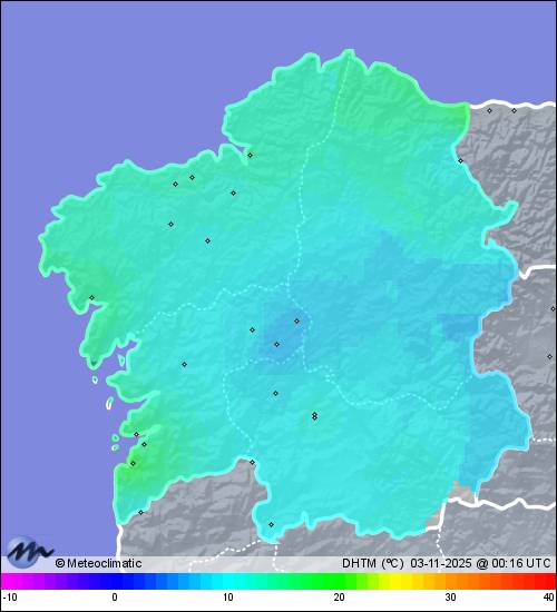 | 02-11-2025 | | | Máx. | Mín. | | | Temperatura | 16,3 | 7,8 | °C | | Humedad | 98 | 76 | % | | Viento | 13 | n/a | km/h | | Presión | 1.028 | 1.023 | hPa | | Precipitación | 0,0 | mm |