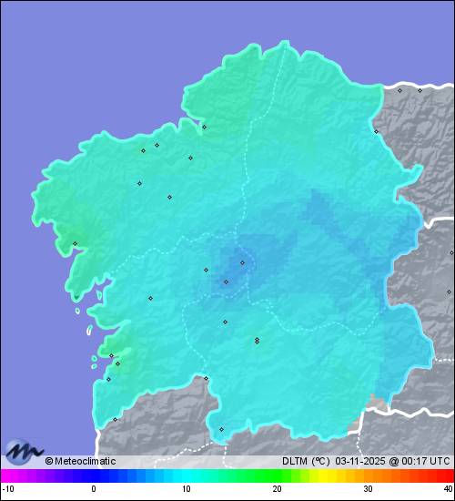 | 02-11-2025 | | | Máx. | Mín. | | | Temperatura | 17,9 | 9,2 | °C | | Humedad | 96 | 66 | % | | Viento | 12 | n/a | km/h | | Presión | 1.027 | 1.022 | hPa | | Precipitación | 0,0 | mm |