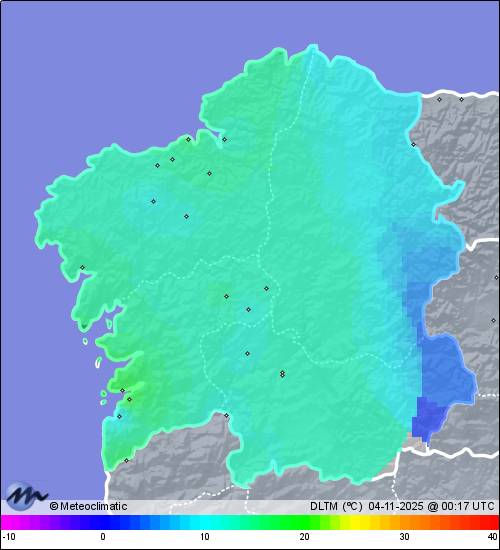 | 03-11-2025 | | | Máx. | Mín. | | | Temperatura | 18,9 | 12,0 | °C | | Humedad | 92 | 67 | % | | Viento | 29 | n/a | km/h | | Presión | 1.025 | 1.016 | hPa | | Precipitación | 5,2 | mm |