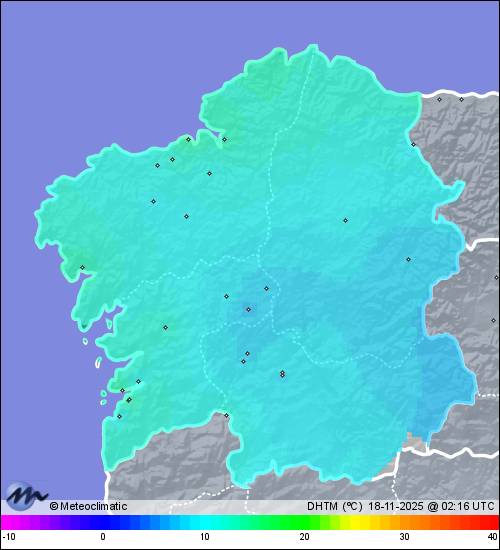 | Campo Lameiro (A Lagoa) | 257 | 10,8 | 12,2 | 10,2 | 89 | 91 | 84 | 1.020 | 1.020 | 1.020 | 5 NNE | 16 | - | 653,6 | |