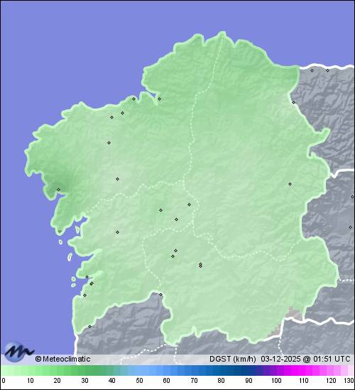 | Barrio O Sisto | 539 | 0,4 | 1,6 | 0,4 | 99 | 99 | 99 | 1.019 | 1.019 | 1.018 | 2 ESE | 4 | - | 1.337,8 | |