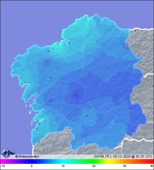 | Campo Lameiro (A Lagoa) | 257 | 3,1 | 3,4 | 2,8 | 98 | 98 | 97 | 1.017 | 1.017 | 1.016 | - | 0 | 0,2 | 786,2 | |