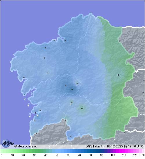 | Actualizado: 07:59 UTC | 8,3°C 85% | 8,9 °C / 91% | | 7,4°C / 83% | | 14 km/h SSE | | 45 km/h | | 1.018 hPa |