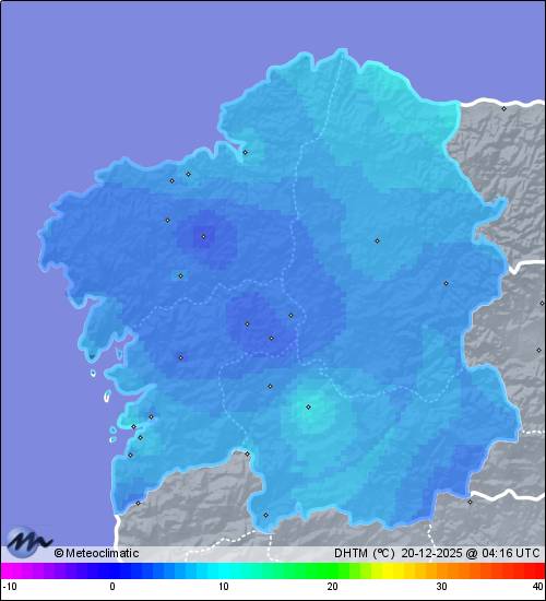 | Escarcha | | Actualizado: 02:05 UTC | 0,2°C 95% | 1,9 °C / 95% | | 0,1°C / 94% | | 1.020 hPa |