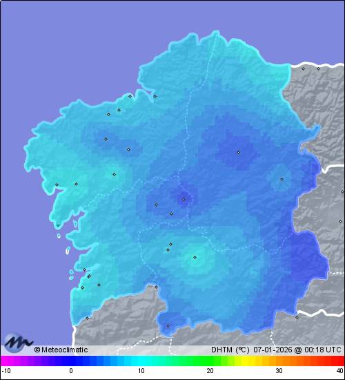 | 06-01-2026 | | | Máx. | Mín. | | | Temperatura | 6,9 | 1,2 | °C | | Humedad | 92 | 75 | % | | Viento | 35 | n/a | km/h | | Presión | 1.024 | 1.018 | hPa | | Precipitación | 7,1 | mm |