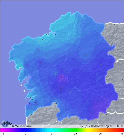 | 06-01-2026 | | | Máx. | Mín. | | | Temperatura | 6,9 | 1,2 | °C | | Humedad | 92 | 75 | % | | Viento | 35 | n/a | km/h | | Presión | 1.024 | 1.018 | hPa | | Precipitación | 7,1 | mm |