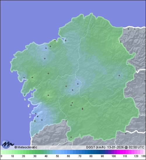 | O Sisto - Dozón | 539 | 6,6 | 6,7 | 6,6 | 99 | 99 | 98 | 1.008 | 1.009 | 1.008 | 14 SSE | 46 | 2,0 | 28,6 | |
