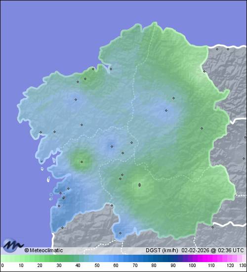 | Vigo - Coia | 60 | 14,4 | 15,2 | 14,4 | 80 | 85 | 73 | 987 | 990 | 987 | 7 NW | 45 | x | x | |