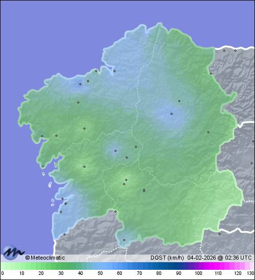 | O Sisto - Dozón | 539 | 2,5 | 2,5 | 2,2 | 98 | 99 | 98 | 985 | 986 | 985 | 17 SSW | 40 | 0,8 | 366,7 | |
