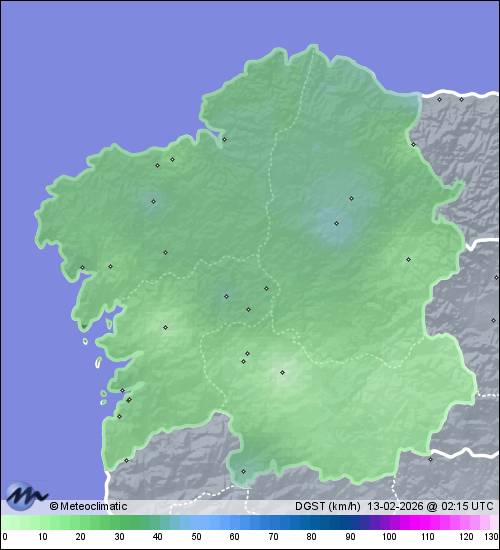 | O Sisto - Dozón | 539 | 6,1 | 6,5 | 6,1 | 99 | 99 | 99 | 999 | 1.001 | 999 | 11 SSW | 30 | 2,0 | 532,7 | |