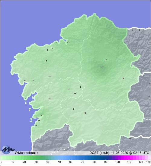 | Rodeiro-Vilarmaior | 643 | 7,2 | 7,3 | 6,7 | 97 | 100 | 96 | 1.024 | 1.024 | 1.024 | 2 WSW | 6 | 0,6 | 562,0 | |