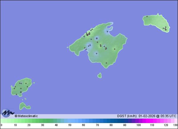 | Alcudi-Estany des Ponts | 7 | 9,6 | 17,9 | 9,5 | 90 | 90 | 39 | 1.010 | 1.014 | 1.010 | 2 SSW | 59 | - | 99,6 | |