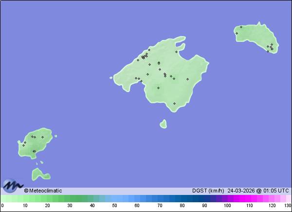 | Manacor - Son Sastre | 135 | 11,0 | 15,5 | 9,7 | 82 | 84 | 57 | 1.021 | 1.021 | 1.012 | 4 NNE | 33 | - | - | |