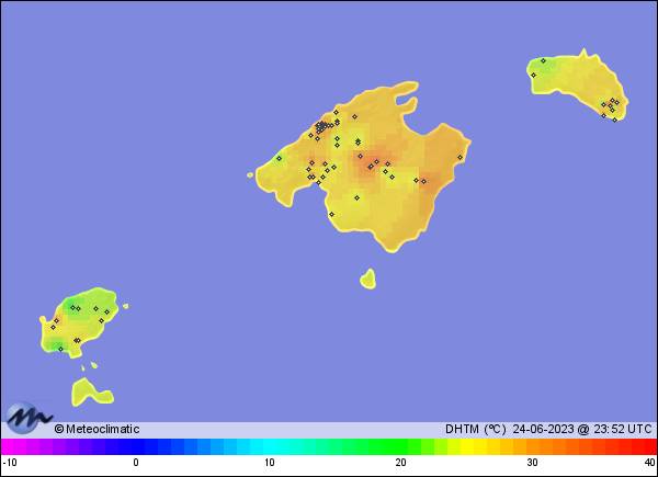 | 24-06-2023 | | | Máx. | Mín. | | | Temperatura | 29,3 | 21,3 | °C | | Humedad | 92 | 62 | % | | Precipitación | 0,0 | mm |
