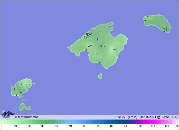 | Sant Antoni de Portmany | 35 | n/a | 24,3 | 22,2 | n/a | 81 | 54 | n/a | 1.013 | 1.005 | n/a | 53 | 0,2 | 406,2 | |