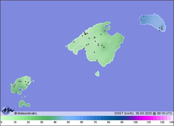 | Eivissa | 27 | n/a | 17,6 | 11,1 | n/a | 73 | 34 | n/a | 1.018 | 1.014 | n/a | 66 | - | 696,2 | |