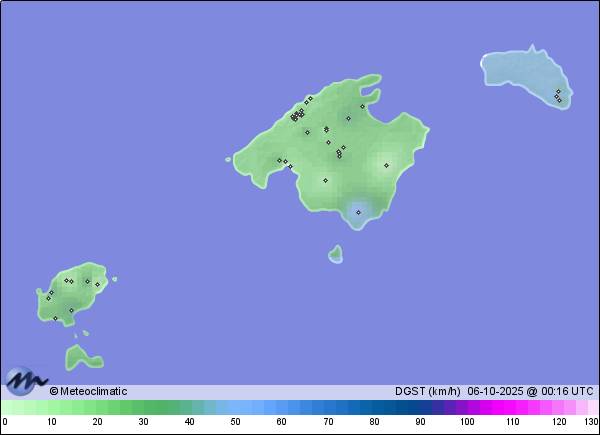 05-10-2025 | | Máx. | Mín. | | Temperatura | 21,6 | 19,0 | °C | Humedad | 86 | 45 | % | Viento | 40 | n/a | km/h | Presión | 1.024 | 1.017 | hPa | Precipitación | 0,0 | mm |