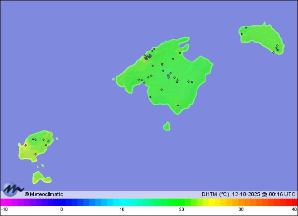 11-10-2025 | | Máx. | Mín. | | Temperatura | 21,0 | 16,9 | °C | Humedad | 94 | 76 | % | Viento | 32 | n/a | km/h | Presión | 1.025 | 1.022 | hPa | Precipitación | 0,0 | mm |