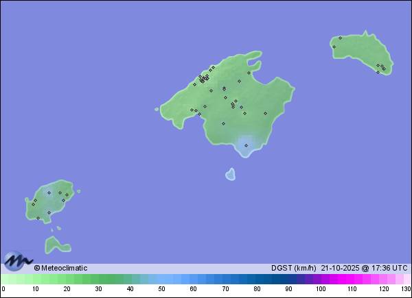 | Palma - Son Dameto | 48 | 23,0 | 25,6 | 17,5 | 68 | 96 | 49 | 1.008 | 1.010 | 1.007 | 2 WSW | 15 | - | 145,5 | |