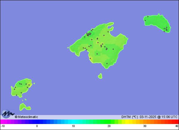 | Sant Antoni de Portmany | 35 | 16,3 | 16,3 | 12,5 | 75 | 83 | 75 | 1.025 | 1.025 | 1.023 | 3 ESE | 15 | - | 406,2 | |