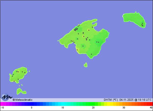 | Palma - Son Dameto | 48 | 19,7 | 20,5 | 11,2 | 59 | 96 | 53 | 1.023 | 1.024 | 1.022 | 3 NNW | 9 | - | 174,5 |  |