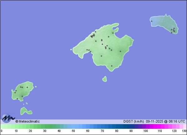 | Vilafranca de Bonany | 130 | 13,4 | 15,6 | 13,1 | 84 | 85 | 69 | 1.018 | 1.018 | 1.016 | 5 W | 24 | 0,8 | 376,6 | |