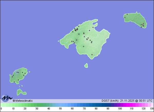 | Marratxí - Son Ametler | 55 | 11,2 | 11,3 | 7,5 | 66 | 92 | 66 | 1.014 | 1.015 | 1.014 | 16 NW | 33 | - | 377,2 | |