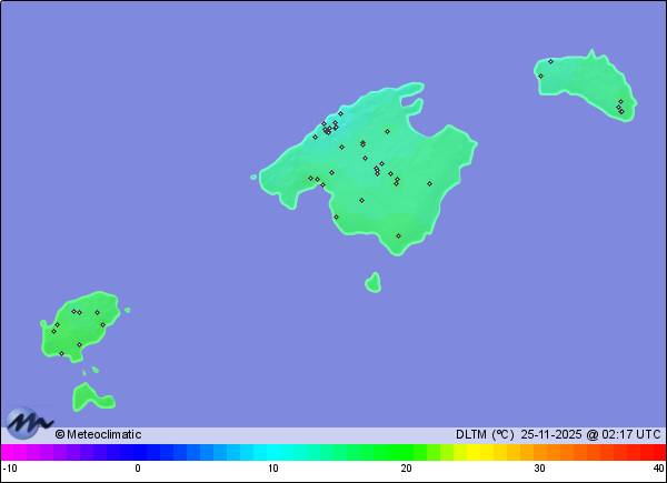 | Palma - Ciutat Jardí | 11 | 18,2 | 18,3 | 18,1 | 77 | 78 | 76 | 1.005 | 1.005 | 1.005 | 11 W | 27 | - | 326,6 | |