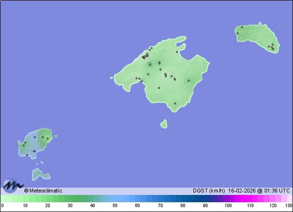 | Sant Jordi de ses Salines | 50 | 15,7 | 15,7 | 15,7 | 61 | 61 | 61 | 1.019 | 1.019 | 1.019 | 13 WNW | 35 | - | 125,4 | |