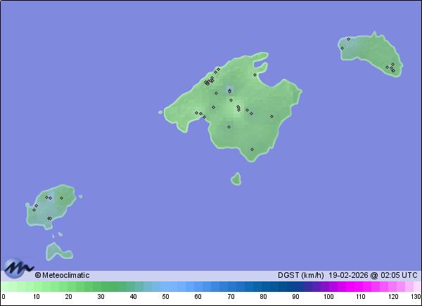 | Ciutadella de Menorca | 16 | 14,4 | 14,4 | 13,9 | 82 | 87 | 82 | 1.009 | 1.009 | 1.008 | 21 W | 35 | - | 112,8 | |