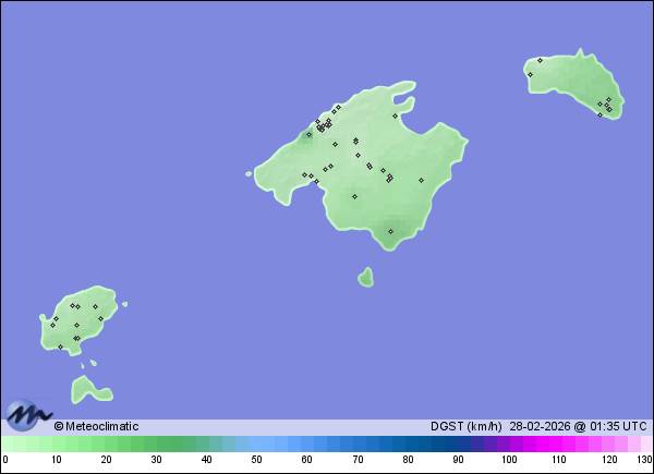 | Sant Antoni de Portmany | 35 | 13,4 | 13,4 | 13,4 | 82 | 82 | 82 | 1.022 | 1.022 | 1.022 | 6 ESE | 8 | - | 129,4 | |