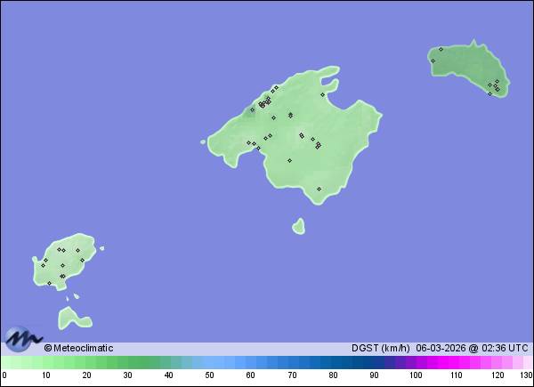 | Ciutadella de Menorca | 16 | 13,5 | 13,8 | 13,1 | 95 | 95 | 93 | 1.011 | 1.013 | 1.010 | 14 ENE | 26 | 7,4 | 113,8 | |