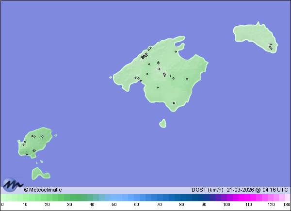 | Sant Jordi de ses Salines | 50 | 13,1 | 13,2 | 13,1 | 76 | 77 | 76 | 1.012 | 1.012 | 1.012 | 8 NNE | 18 | - | 163,6 | |