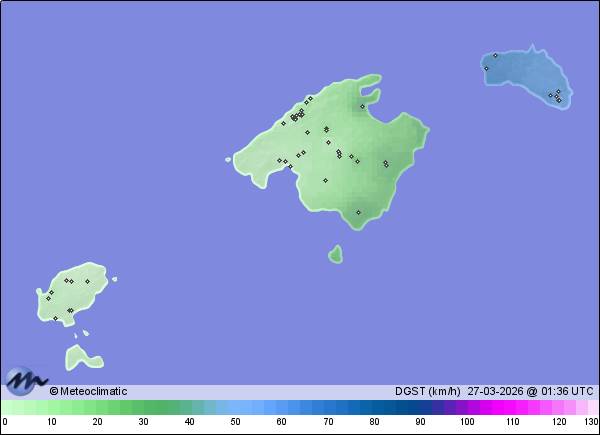 | Escorca-Sa Calobra | 30 | 13,0 | 13,1 | 13,0 | 57 | 58 | 55 | 1.020 | 1.020 | 1.020 | 4 WNW | 9 | - | 238,0 | |