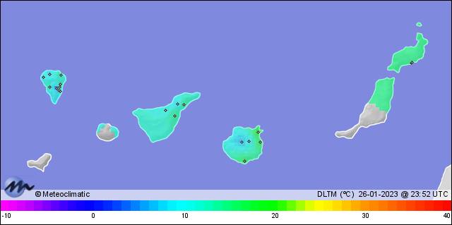 | 26-01-2023 | | | Máx. | Mín. | | | Temperatura | 18,4 | 16,3 | °C | | Humedad | 66 | 46 | % | | Viento | 42 | n/a | km/h | | Presión | 1.025 | 1.021 | hPa | | Precipitación | 0,0 | mm |
