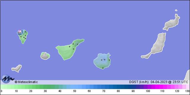 | 04-04-2023 | | | Máx. | Mín. | | | Temperatura | 16,8 | 11,1 | °C | | Humedad | 93 | 8 | % | | Viento | 55 | n/a | km/h | | Precipitación | 1,6 | mm |